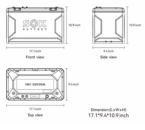 SOK Battery SK12V314PH | 12V314Ah Battery, Built-in heater & Bluetooth, Victron CAN Comms